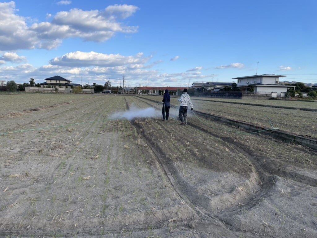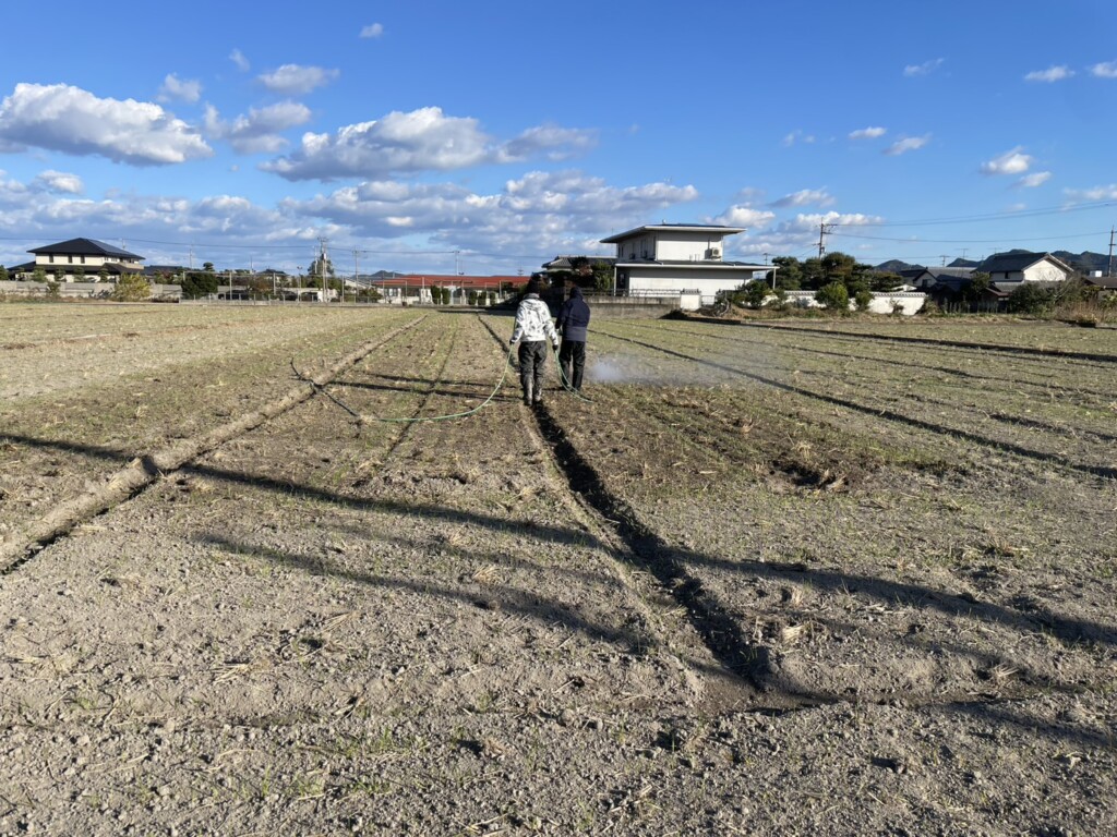 初期除草剤散布のようすです。